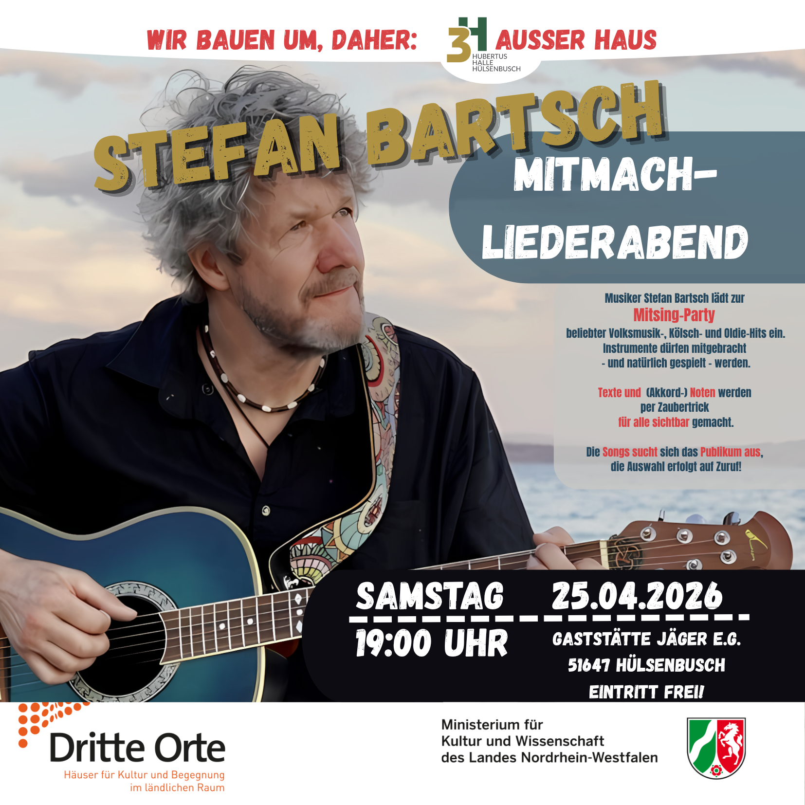 Einen Abend mit bekannten und beliebten Songs, Evergreens, Volksmusikkrachern, Kölschrockhits, Seemannsliedern, usw.